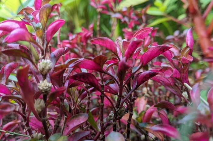 アルテルナンテラは、半耐寒性の多年草。赤、ピンク、オレンジ、紫など、色鮮やかなカラーリーフとして人気があります。