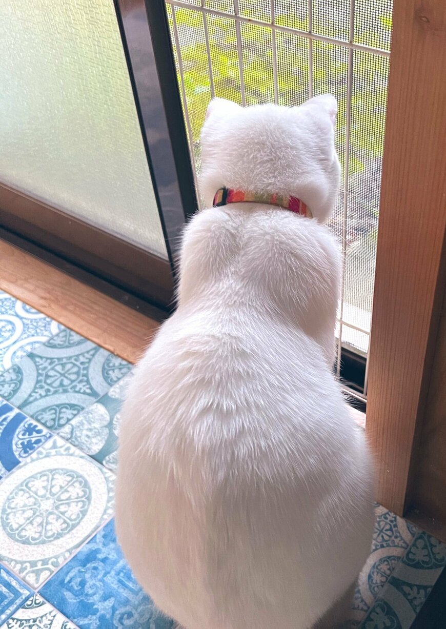 2枚目の写真を見ると、どうやら外の景色を眺めていたようです。