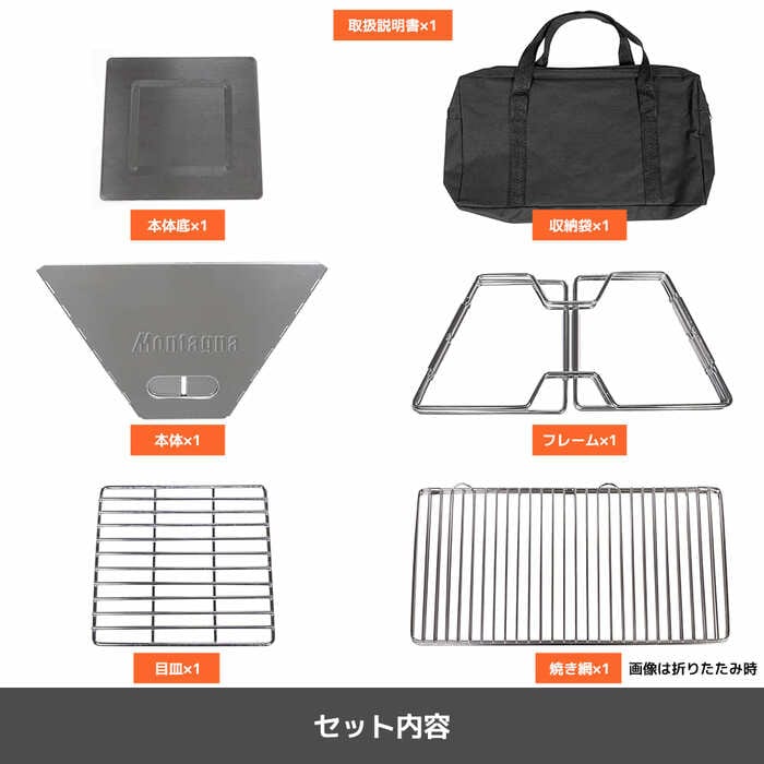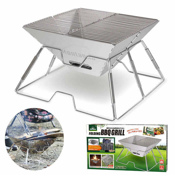 網を乗せればバーベキューに、外せば焚火台として使える便利な一品。ピラミッド型の設計は、安定感がよいので川原などでも使いやすそうです。折りたたんで収納できるので、持ち運びも簡単ですね。