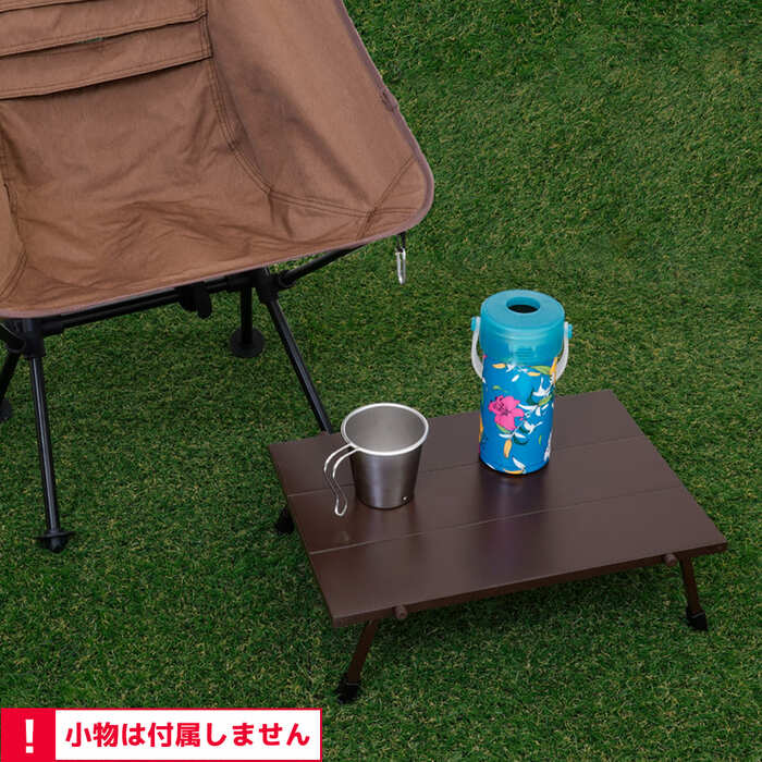 濡れると困るコンテナや食品、布製品を置くのに便利なテーブルです。アルミポールで天板と脚をしっかりとネジ止めする組み立て式なので、耐荷重も15kgと安定感があります。セカンドテーブルとしても使いやすいでしょう。