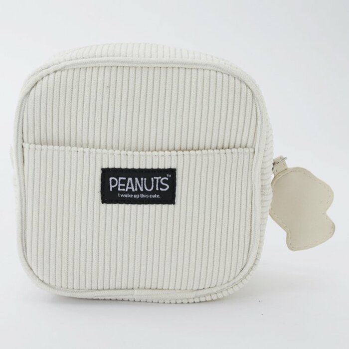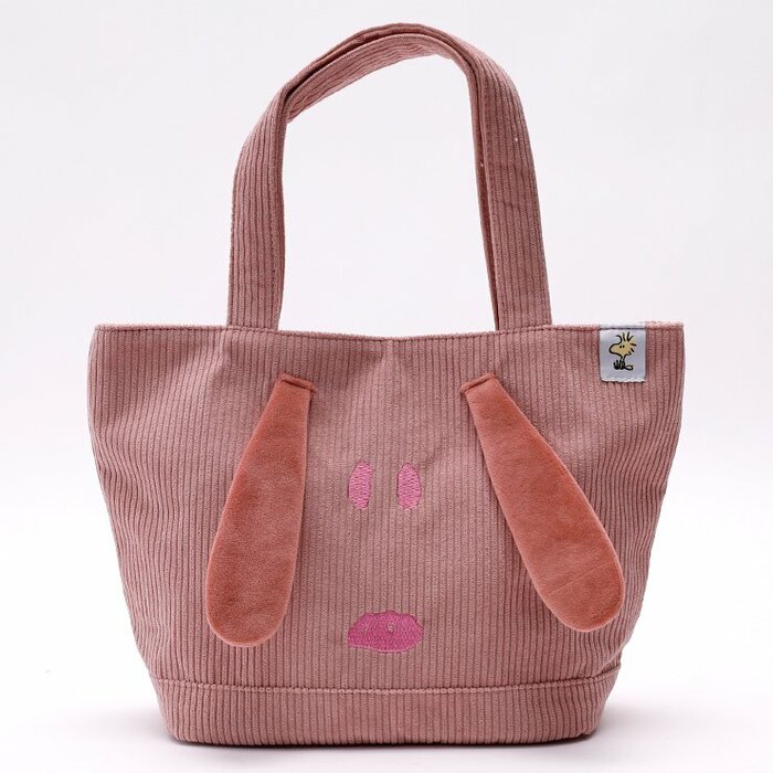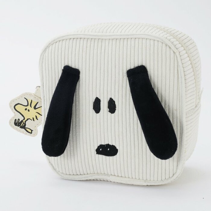 今回は、これからの季節にピッタリのコーデュロイ素材で登場。ホワイトとピンクのスヌーピーが大人かわいくデザインされています。トートもポーチも、見て・触って癒されそうですね。