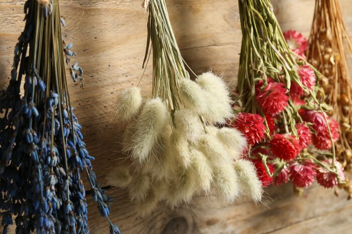 冬枯れしてしまう前に摘み取って部屋に吊るしておくと、色がキレイなままインテリアオブジェとして楽しめます。