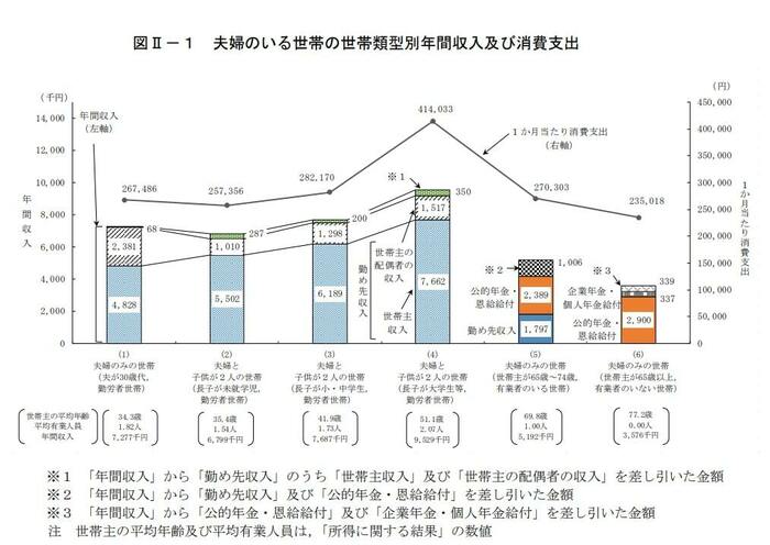 はじめに参考までに「夫婦だけの世帯」を見ると、年間収入は727万7000円(うち世帯主の勤め先収入が482万8000円、世帯主の配偶者の勤め先収入が238万1000円)、金融資産残高は590万2000円、1カ月の消費支出は26万7000円です。