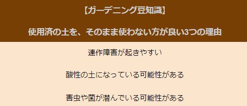植物は土から水分や養分を取り入れています。そのため、植物を育てたあとの土は本来含まれるべき養分が減ってしまっている状態です。