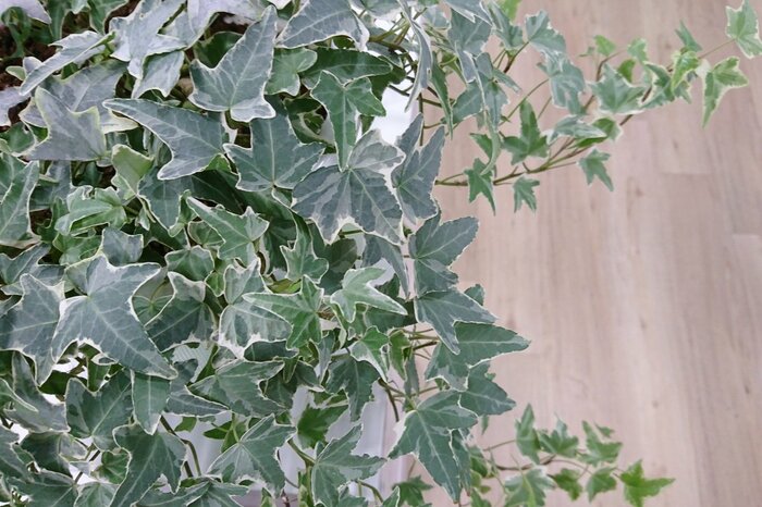 ヘデラ・ヘリックスの品種のひとつ。白い葉が美しく、グリーンとのコントラストが大変オシャレです。白い葉は新葉なので、順調に育たないと白い葉が育たず、徐々に減ってきます。白い葉はやがて緑色に変化します。