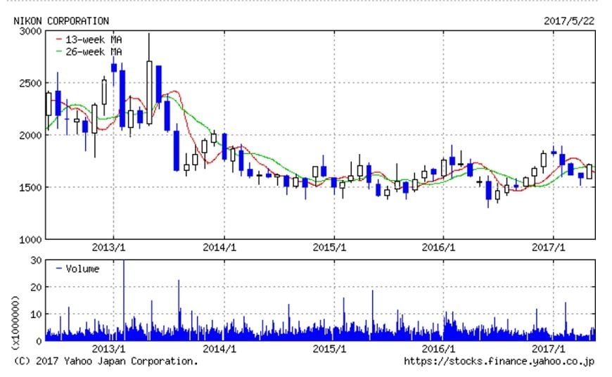 半導体製造装置事業でリストラを実施し、カメラ事業においてはハイエンドコンパクトデジタルカメラ「DLシリーズ」の発売中止を決定する等、2017年3月期は様々な方向転換に追われたニコンですが、株価推移を見る限り、株式市場は今後の事業の成長を待っているように見受けられます。