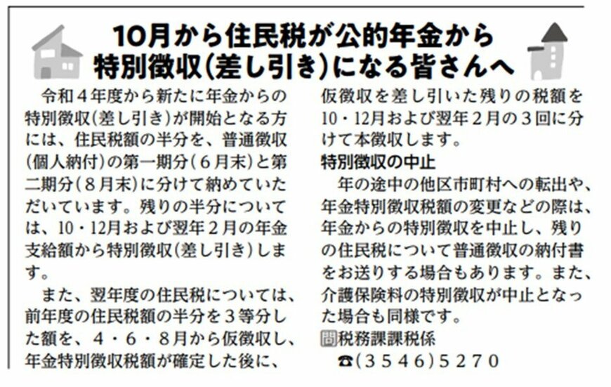こちらは、10月から住民税が特別徴収になる方に向けた案内です。
