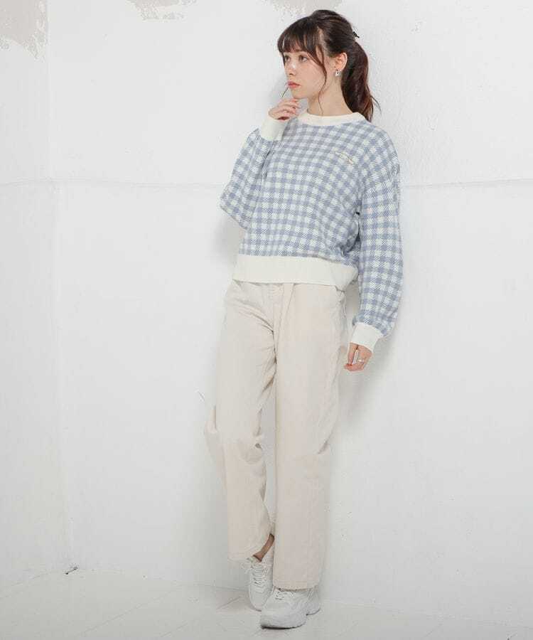 大き目のギンガムチェックが上品な雰囲気も出しています。したがって、スカートと合わせてもおしゃれです。