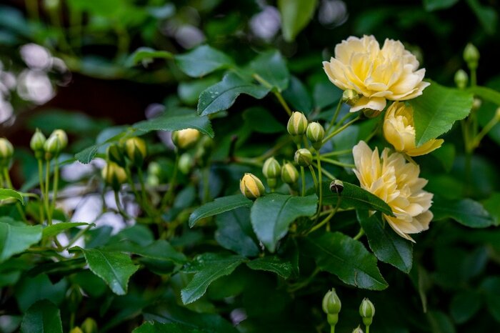 クレマチス、ヘデラ、ルリマツリ、ハツユキカズラ、モッコウバラ、ブラックベリーなど