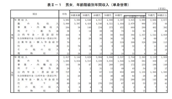 おひとりさまの年間収入:男性・女性