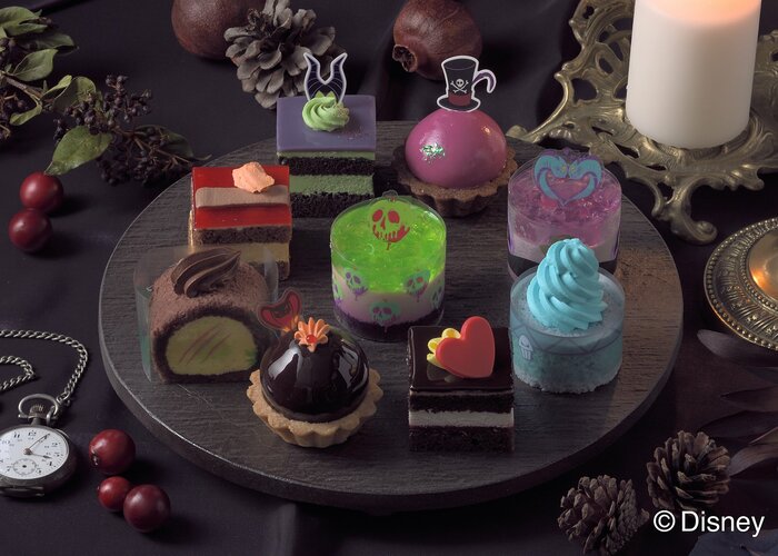 ハロウィンシーズンにピッタリな「ディズニーヴィランズ」(悪役)。その魅力を9つのプチケーキで表現しました。今年はホラー&ダーク感をさらにアップし、新たに『プリンセスと魔法のキス』の「ドクター・ファシリエ」、『美女と野獣』の「ガストン」が加わりました。