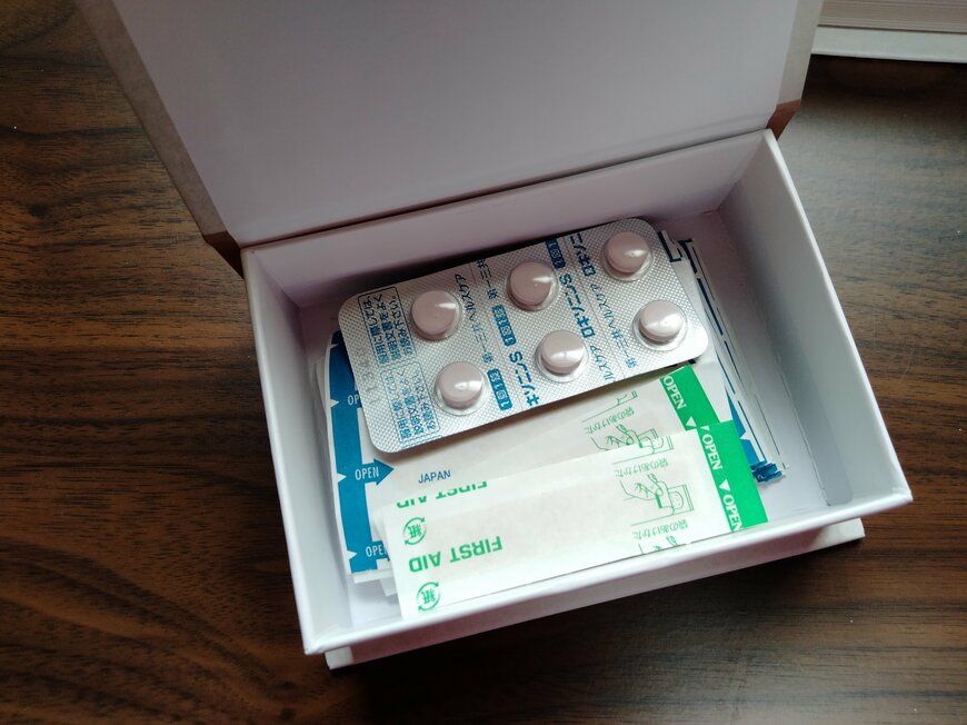 写真のように絆創膏や薬を収納するのにちょうどいいサイズ感となっています。