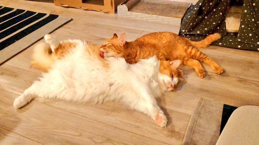 表情をアップにすると、2匹は目を閉じて気持ちよさそうにくつろいでいる様子。素敵なリラックスシーンに、思わずこちらまでウットリしてしまいました。