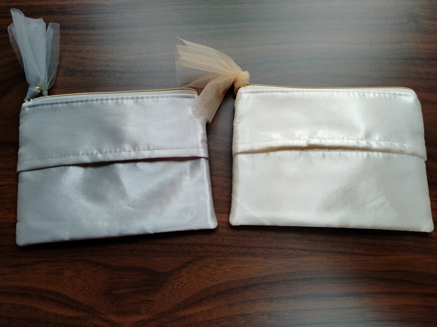 光沢のあるスベスベとしたサテン生地は触り心地もよく、見た目もきれいです。カバンの中やデスクの上にあると、気分があがりそうなかわいいアイテムです。