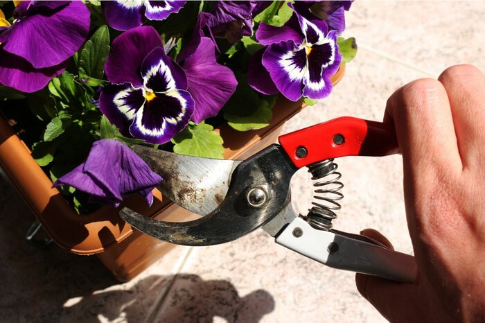 パンジーとビオラは花がたくさん咲く様子が美しい植物。そのために施肥と花がら摘みは欠かさないようにしましょう。終わった花はその都度摘んで、種をつくらせないようにすると株が消耗するのを防ぐことができます。