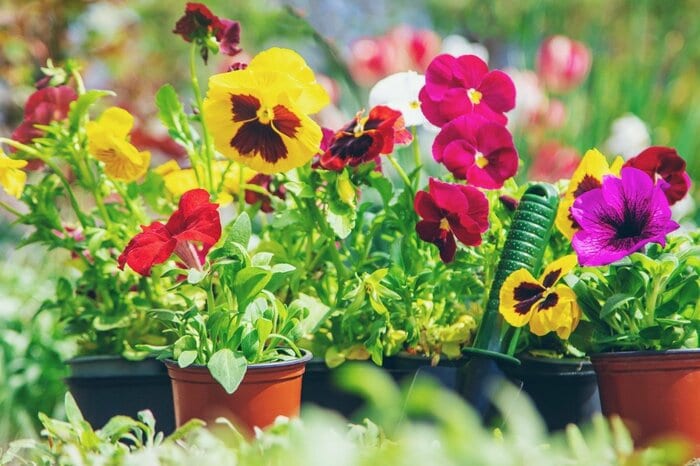 パンジーとビオラは日当たりのよいところを好む植物。よく日に当てて、花つきをよくしましょう。水やりは土が乾いたら、鉢底から水が流れるくらいにあげるようにします。