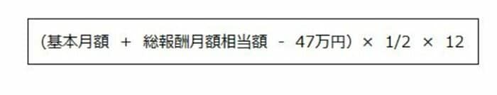 基本月額とは、老齢厚生年金の年金額を12ヵ月で割った金額のこと。また総報酬月額相当額とは、「毎月の議員報酬(上限65万円)」と「1年間の期末手当の総額を12ヵ月で割った額」を合計した額のことです。