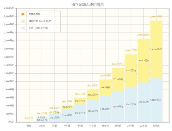 2496万円 (※金融庁資産運用シミュレーション活用/想定利回り(年率5%の場合))