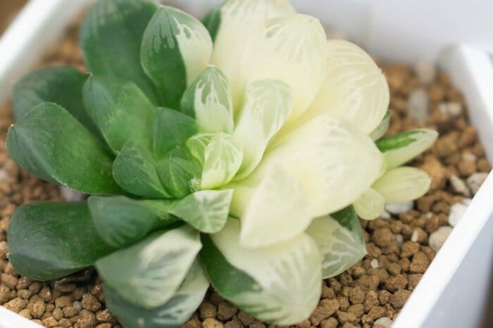 窓のあるハオルチアは多肉植物のなかでも珍しい、室内向きの品種です。強い日光を浴びると窓が傷む可能性があるので戸外で管理しないようにしましょう。
