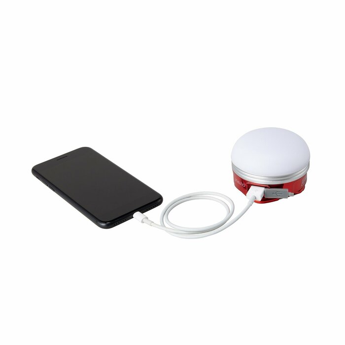 まるで家のリビングの様にテントの前室全体をやさしく照らす吊り下げ式ライトです。充電式で繰り返し使用が可能です。ウォームカラーの包まれるようなやさしい明かりから、Highモードでは250LMで足元まで明るく照らせます。女性の手にも収まる小ぶりで丸みのあるフォルムと、人気のメタリック風レッドが目を引くデザインとなっています。