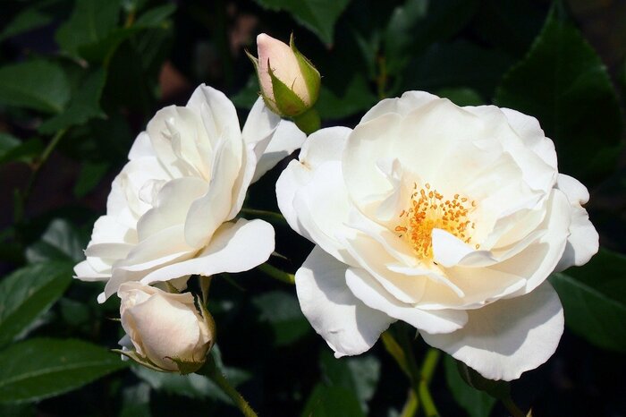 アイスバーグは中輪で房咲きするフロリパンダローズの代表格。透き通るような純白の花弁が美しく、気高さを感じさせる花姿です。耐寒性・耐病性ともに強く、トゲもほとんどありません。
