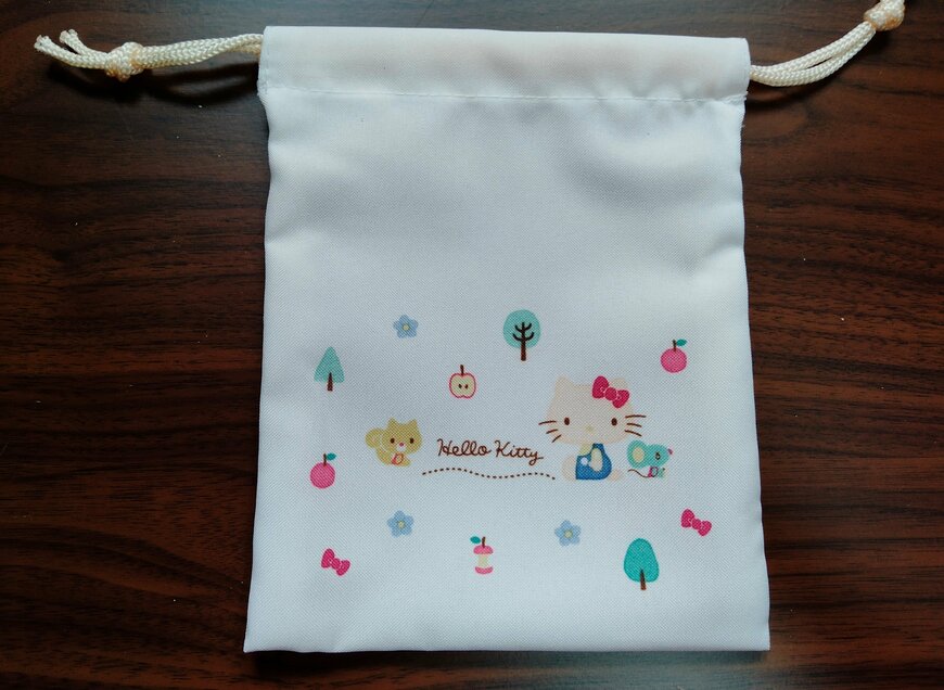 最後に、こちらの『ハローキティ』デザインのものです。ホワイトの生地に、素朴な雰囲気のハローキティのプリントがされています。