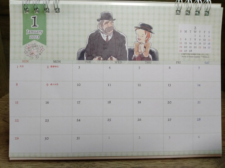 『赤毛のアン』でも1月では孤児院から引き取られて喜ぶアンのイラストが使われています。