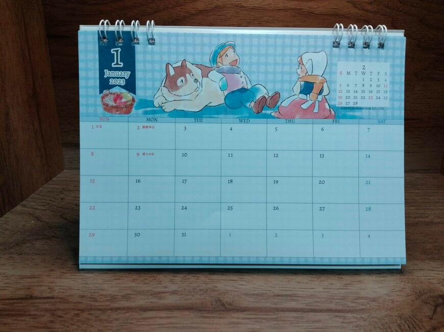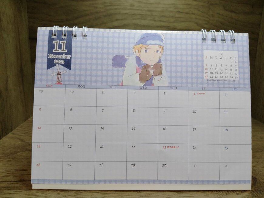 セリアの「世界名作劇場」卓上カレンダーは、12ヶ月間のイラストがすべて異なります。アニメの名シーンが毎月のカレンダーを彩っています。