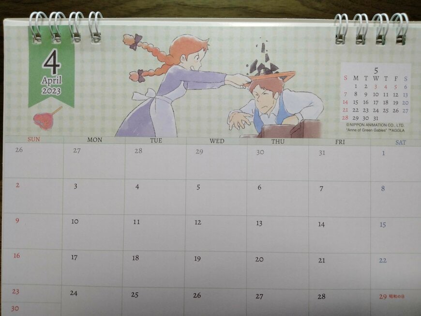 4月では、石板でギルバートを叩く名シーンが使われるなど、成長していくアンの姿を追いかけることができます。