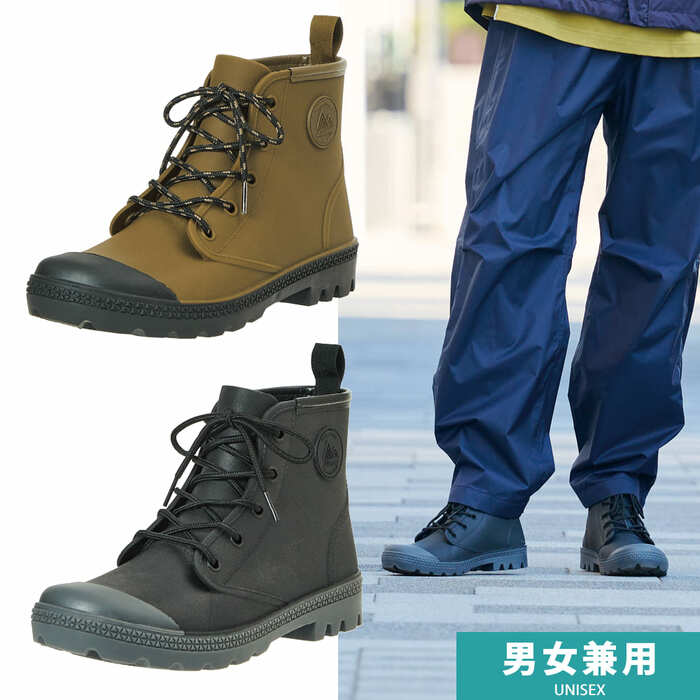 アウトドアファッションによく合いそうな、少しゴツめのデザインがおしゃれですね。防水素材なので、泥汚れを気にせずに作業できるでしょう。足の履き口に合皮を使用したことで、長時間履いても疲れにくいよう工夫されています。なお、レディース用も販売中です。