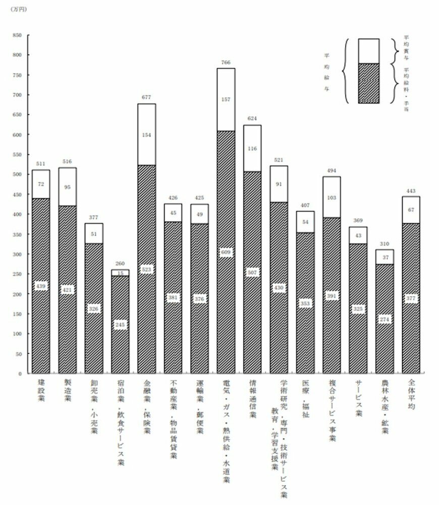 なお、最も低いのは「宿泊業,飲食サービス業」の260万円です。