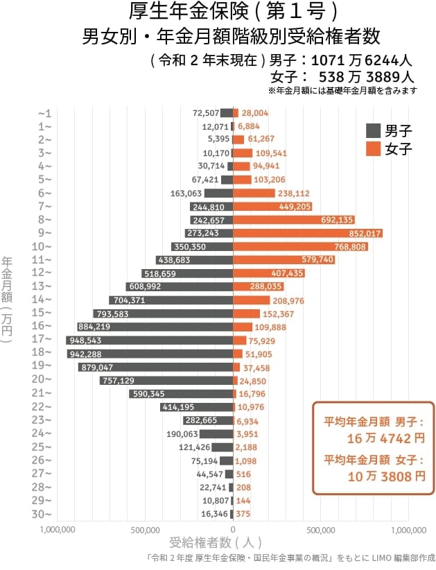 2. 【厚生年金】男女別の月平均の差から見る違い