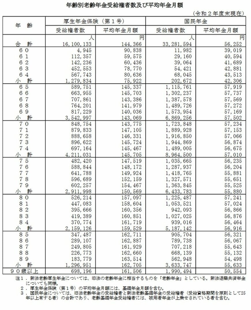 ここからは厚生労働省の直近データ、「令和2年度(2020年)厚生年金・国民年金事業の概況」を参考に、実際の年金受給額を見ていきます。まずは国民年金を確認しましょう。