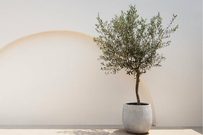 狭い場所でも剪定をおこないながら、鉢植えで育てることができます。玄関先にキレイに整ったオリーブがあると、とてもオシャレ。鉢にもこだわるとシンボルツリーにもなりますよ。