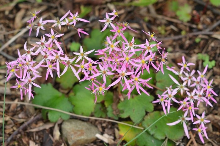 日本各地に自生する山野草で、素朴な雰囲気が魅力のダイモンジソウ。5枚の花弁のうち下2枚が長く、名前どおり漢字の「大」の字に見えます。