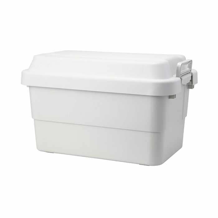 屋外でも使える強度の高い収納ボックス。持ち手付きで積み重ねてもズレにくい形状になっているため、車への積み下ろしや運搬の機会が多いアウトドアシーンにピッタリです。