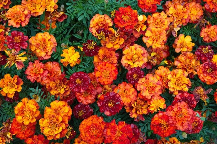 近年はアンティークカラーの美しい色合いが人気のマリーゴールド。このような色合いをオレンジのマリーゴールドの中に数株加えてみると、秋らしく大人っぽい雰囲気に仕上がります。