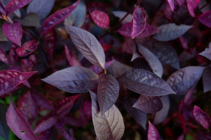 紫色の葉色や株姿が美しいアルテルナンテラ。品種が大変多く、1メートルほどまで生長する種類もあります。後方に植えるなら、やや草丈が高い品種を選ぶとよいでしょう。