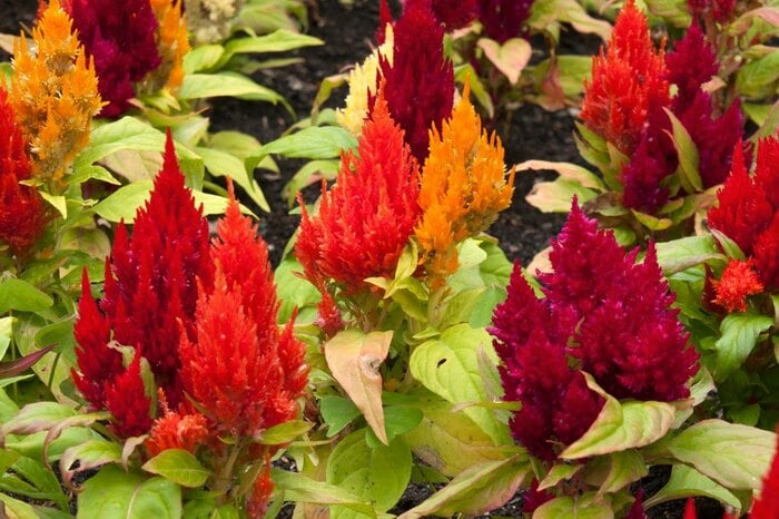 フワフワした質感が秋にピッタリのケイトウはオレンジやレッドをチョイス。定番のトサカのような形の品種、ロウソクの炎のような形の品種、どちらでもキレイに寄せ植えを彩ってくれます。