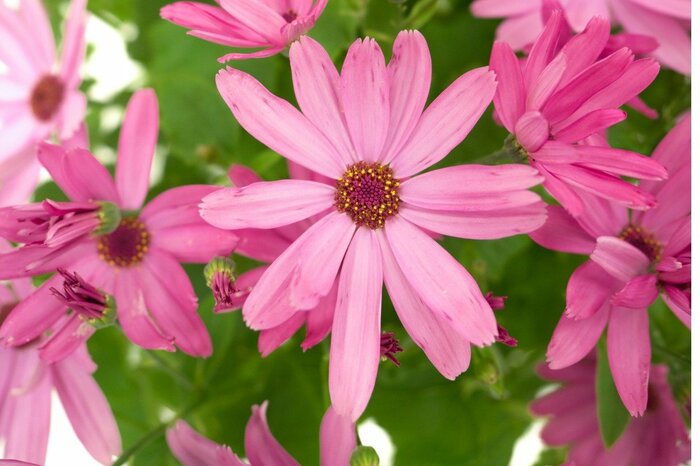 ガーベラやコスモスに似た明るい花を咲かせるシネラリア。