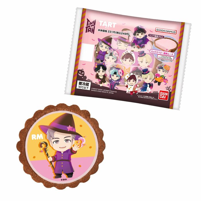 登場したタルトは、ハロウィンパーティーをテーマにしたオリジナル描き起こしデザイン。酸味のさわやかなミックスべリー風味のムースと、ココア風味のシュクレが味わえます。フィルムの種類数は全8種。各キャラクターの単体デザインに全員集合バージョンが加わり、ハロウィン気分を盛り上げてくれます。