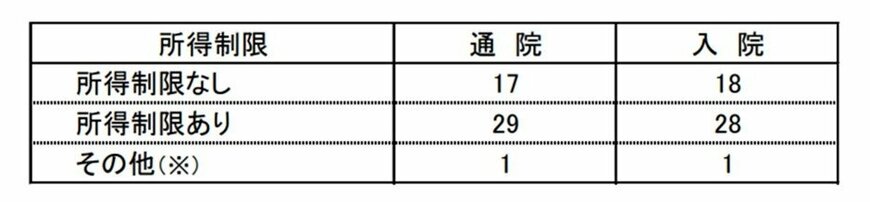 厚生労働省の「乳幼児等に係る医療費の援助についての調査」によると、所得制限を実施する都道府県は通院で29、入院で28でした。