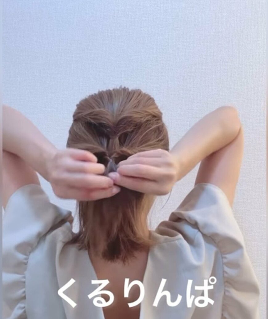 またしても「くるりんぱ」して左右にギュッと引っ張ります。
