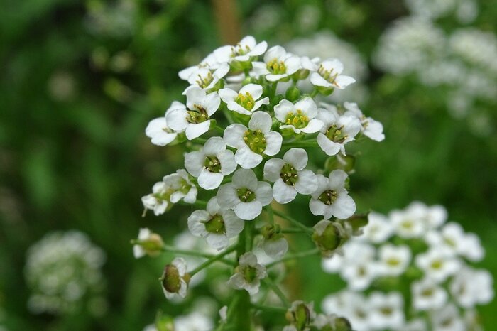 スイートアリッサムは小花が集まって咲く姿が可愛らしい多年草。高温多湿に弱く夏越しが難しいため、日本では一年草として育てられています。