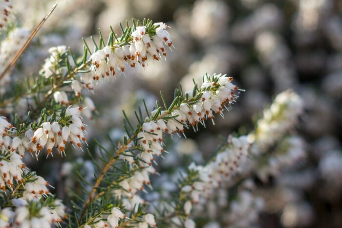 低木のエリカは枝いっぱいに小花を咲かせる可憐な植物。秋になると鉢物としても店頭に並びます。別名「ヒース」とも呼ばれ、ヨーロッパではエリカが群生した美しい光景を楽しめるところもあります。