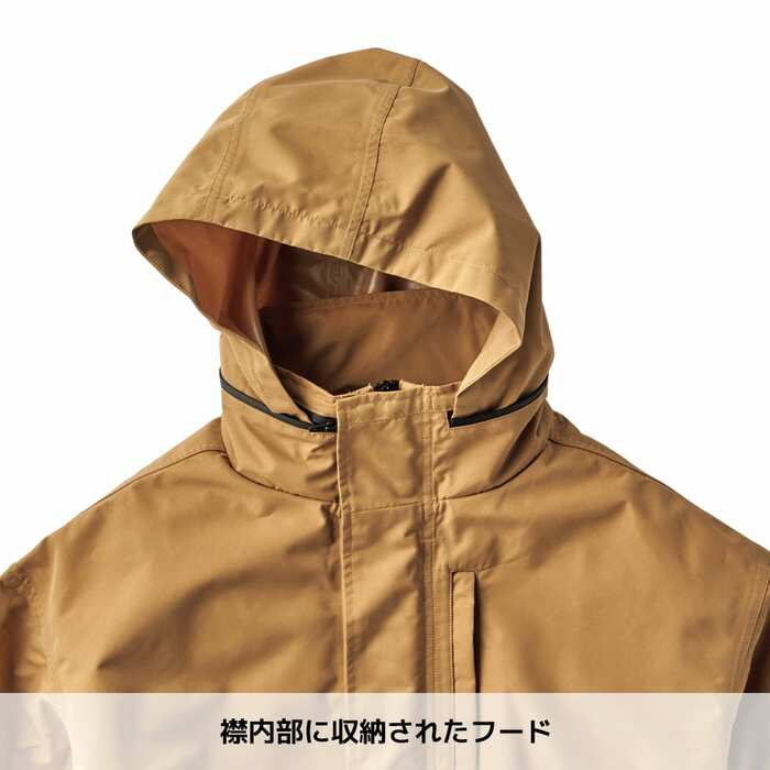 通勤時やお出かけのときなど、オンオフ問わずに着られる「レディースユースフルショートコート」。腰のアジャスターでシルエットを変えられるほか、フードはスタンドネック内に収納できます。