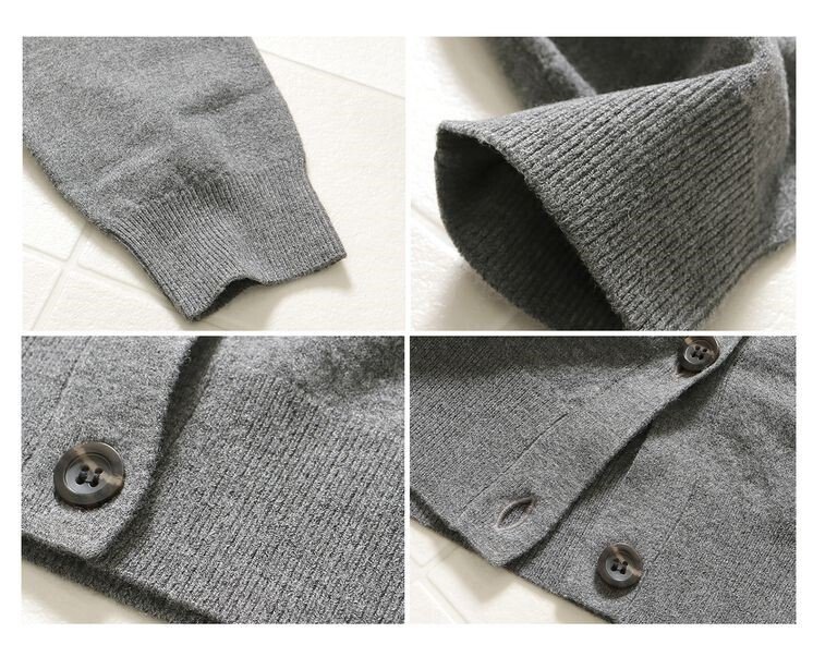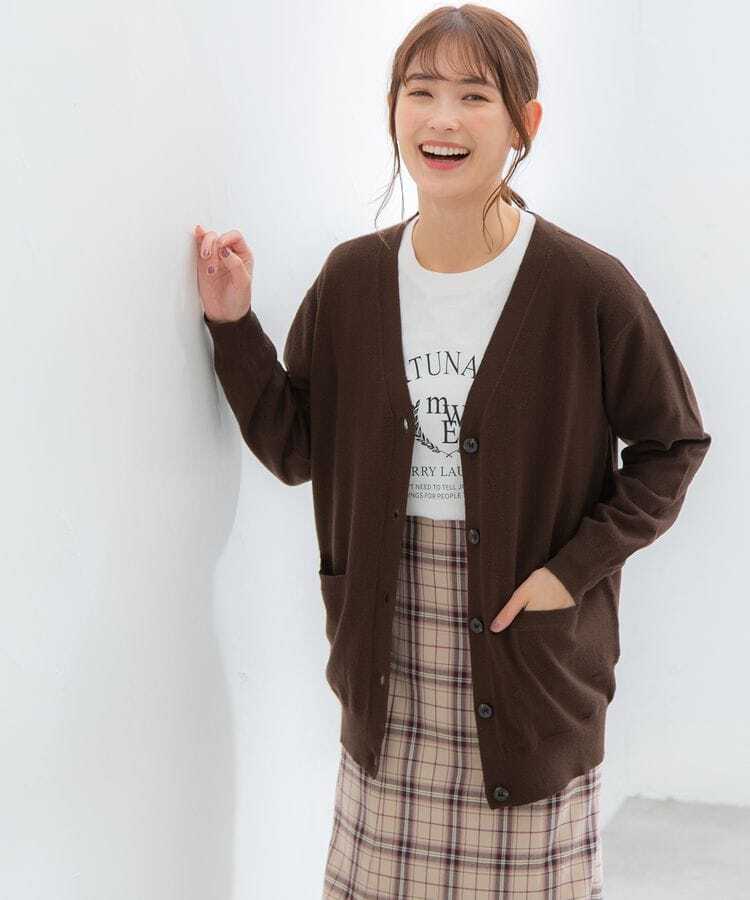 深めのポケットが2つついていて、ちょっとしたものを収納できます。カーディガンのアクセントになっているのも素敵です。