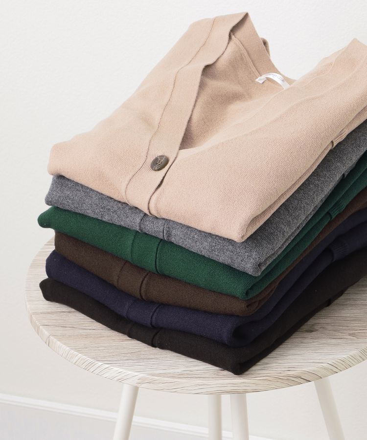 当アイテムは、コーデ力も抜群です。ブラック、ネイビー、ピンクベージュ、グリーン、杢チャコール、ダークブラウンと使いやすい定番カラーがそろっています。