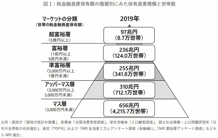 野村総合研究所が公表している「マーケットの分類」によると、富裕層は日本に133万世帯存在するようです。
