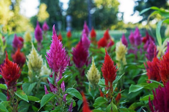 セロシアはケイトウの別名。フサフサした花序がニワトリのトサカのように見える品種やロウソクの炎のような形をした品種など、形や色が多種多様です。
